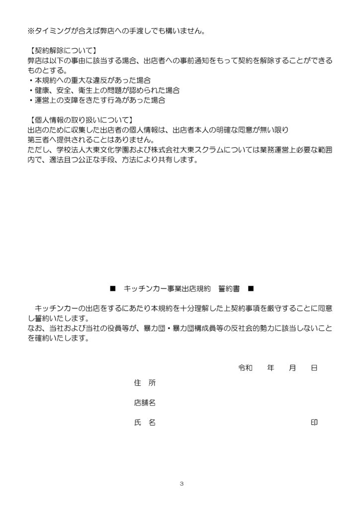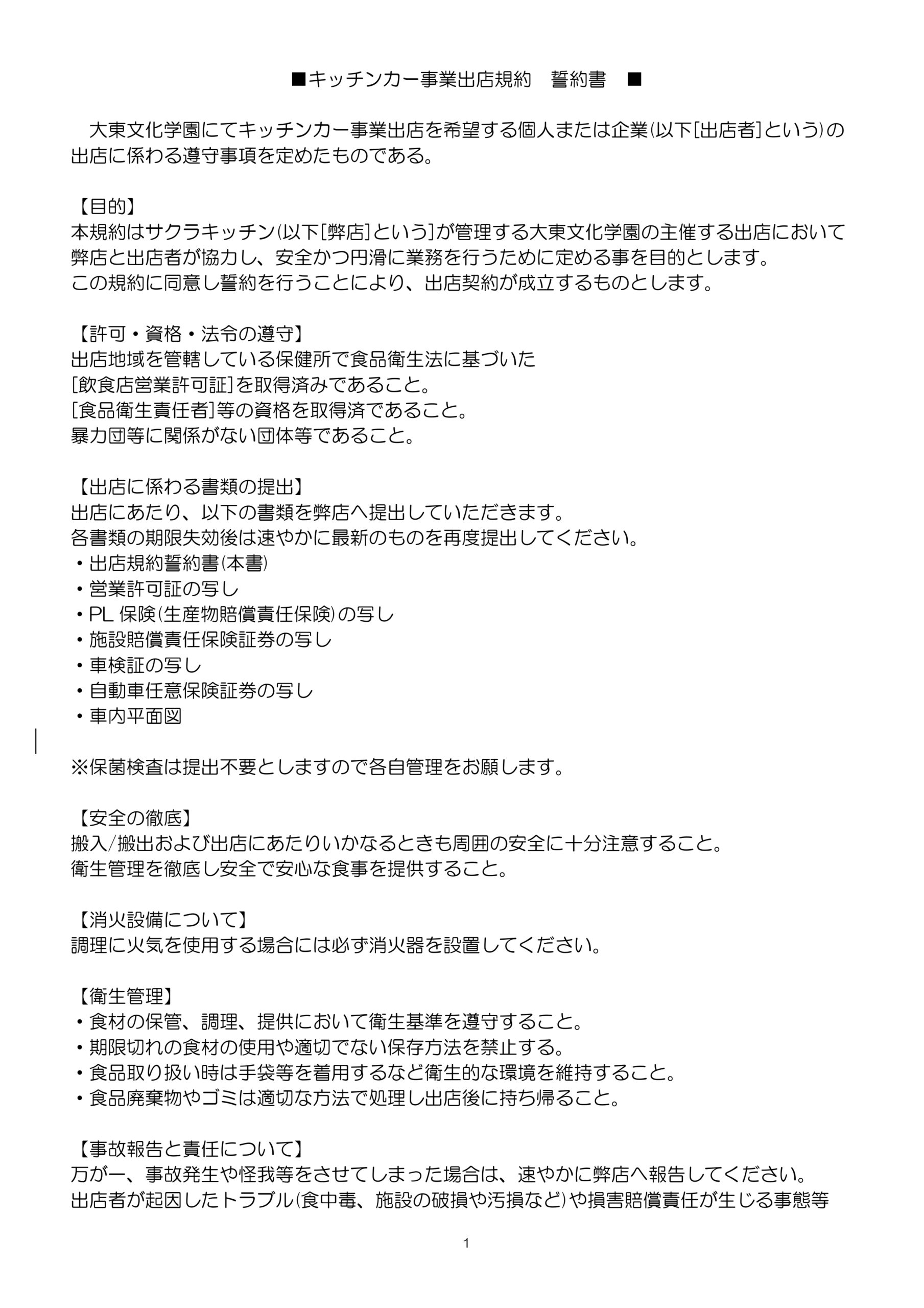 キッチンカー事業出店規約
